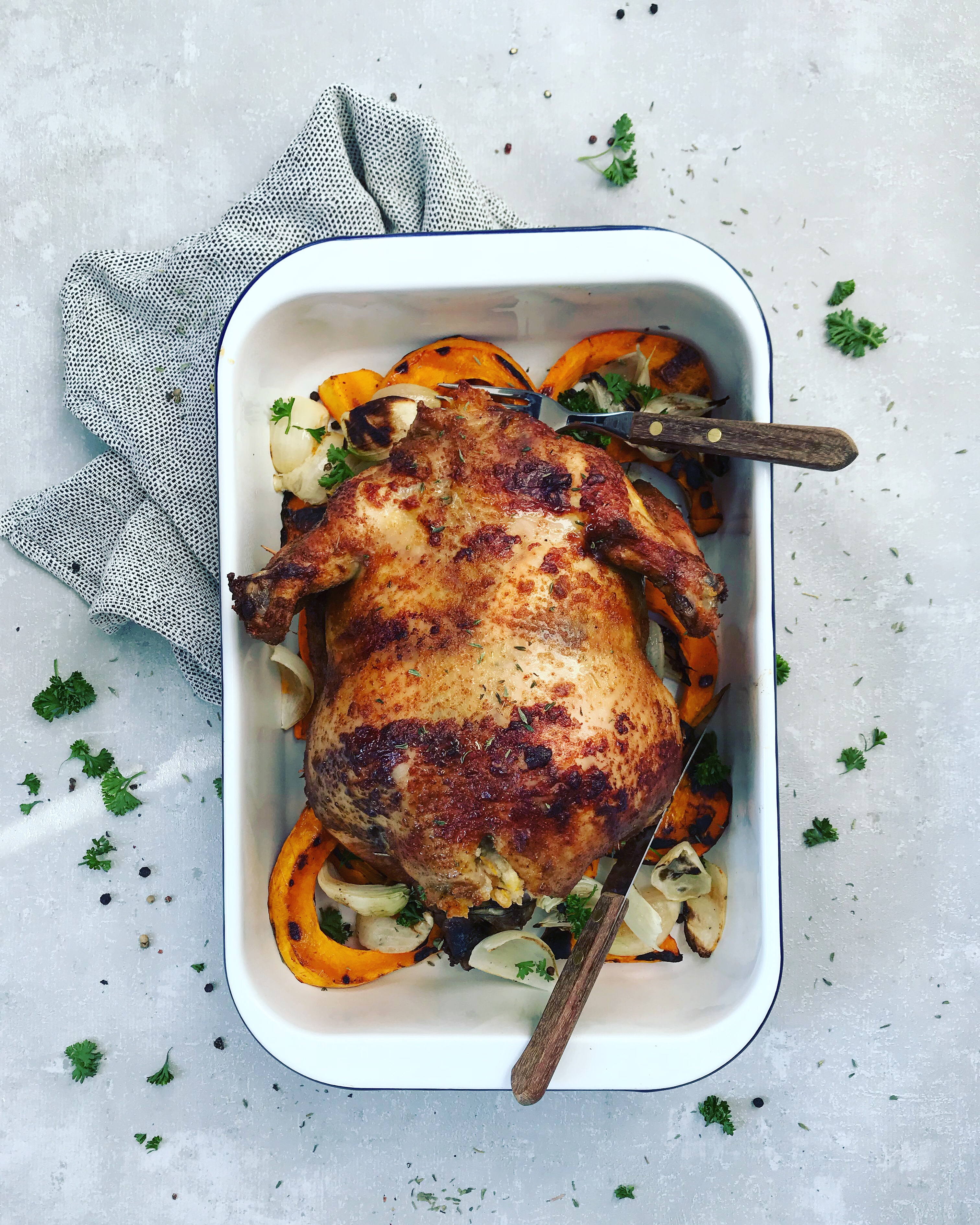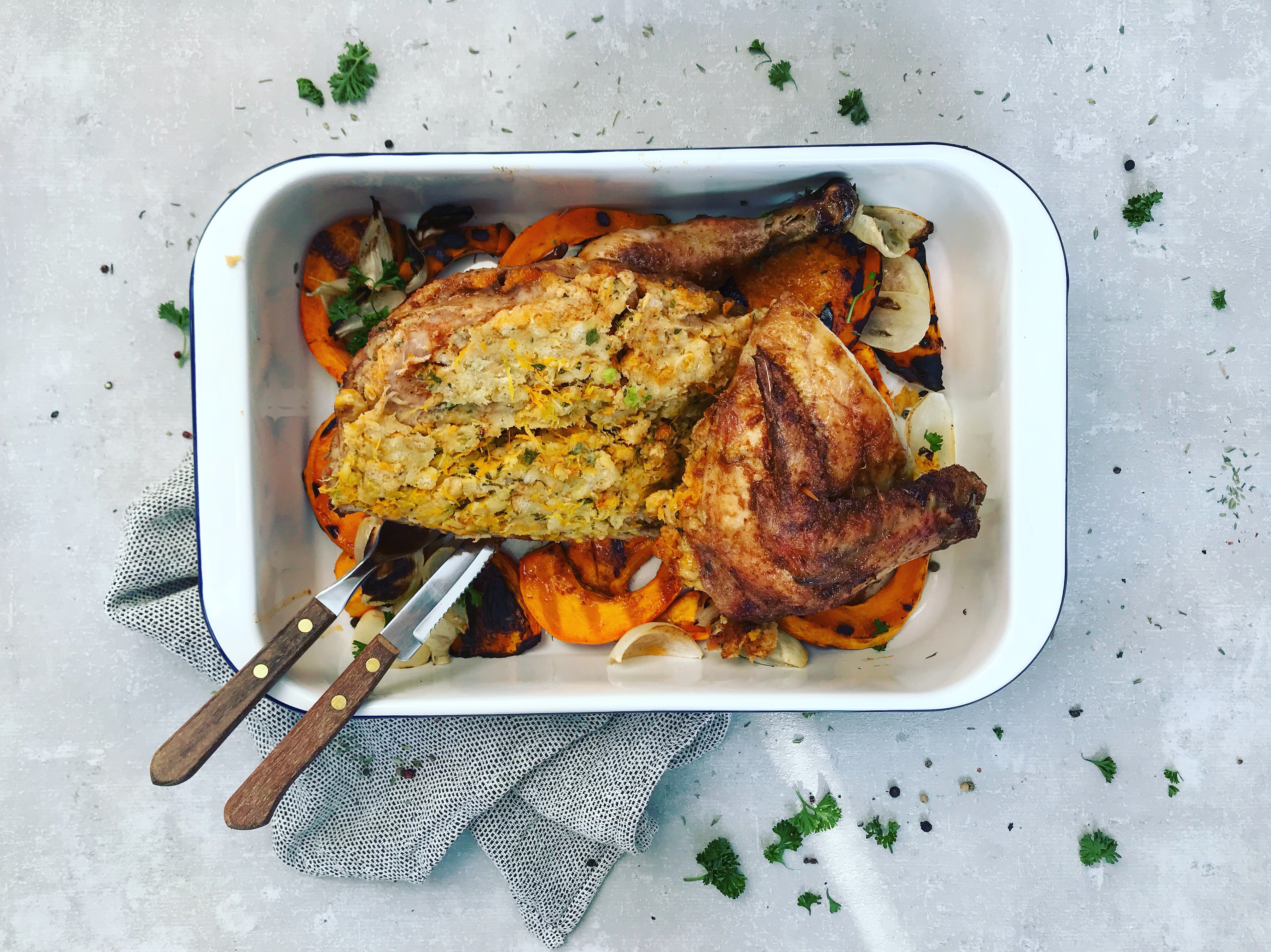 Gefülltes Huhn mit Kürbisspalten