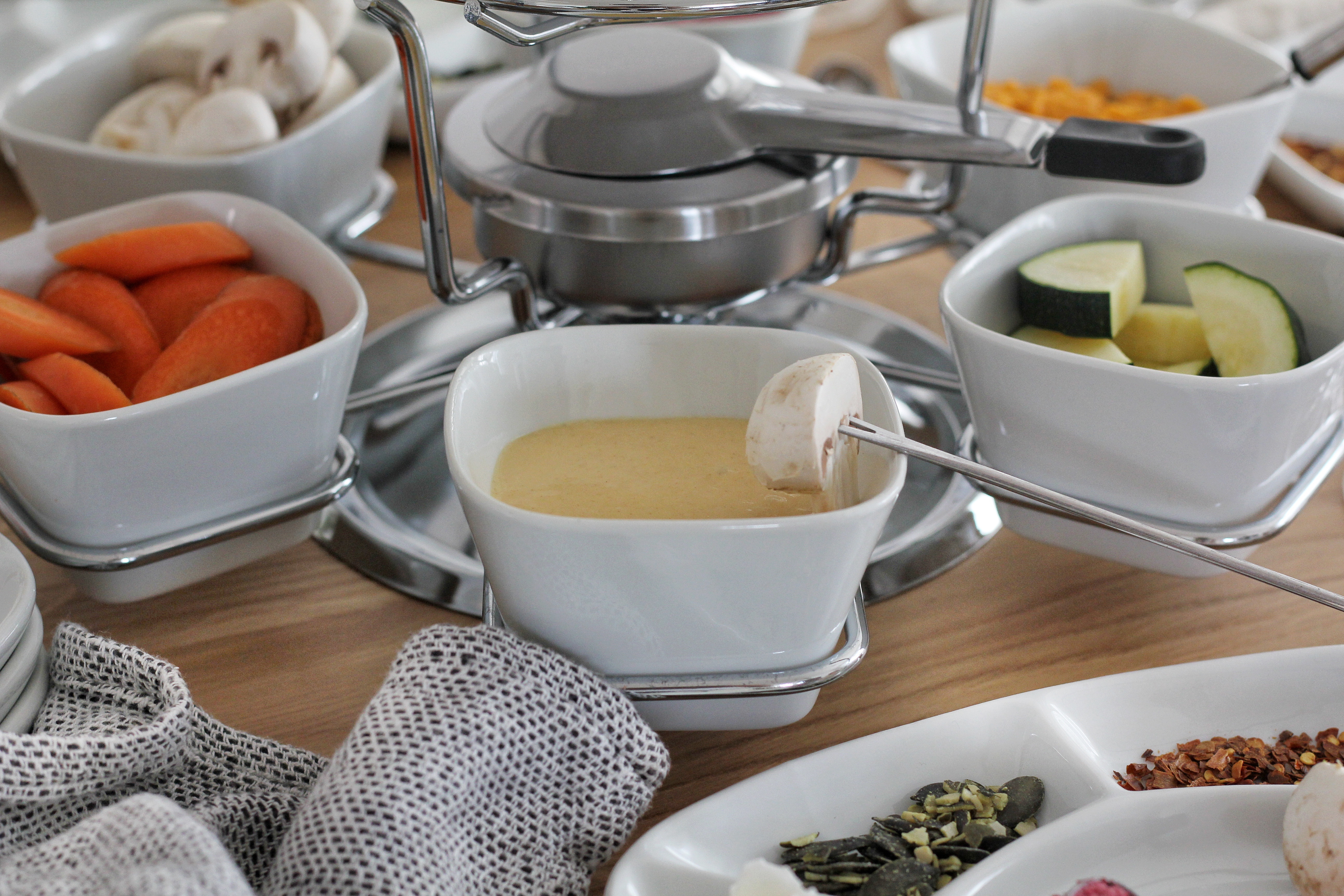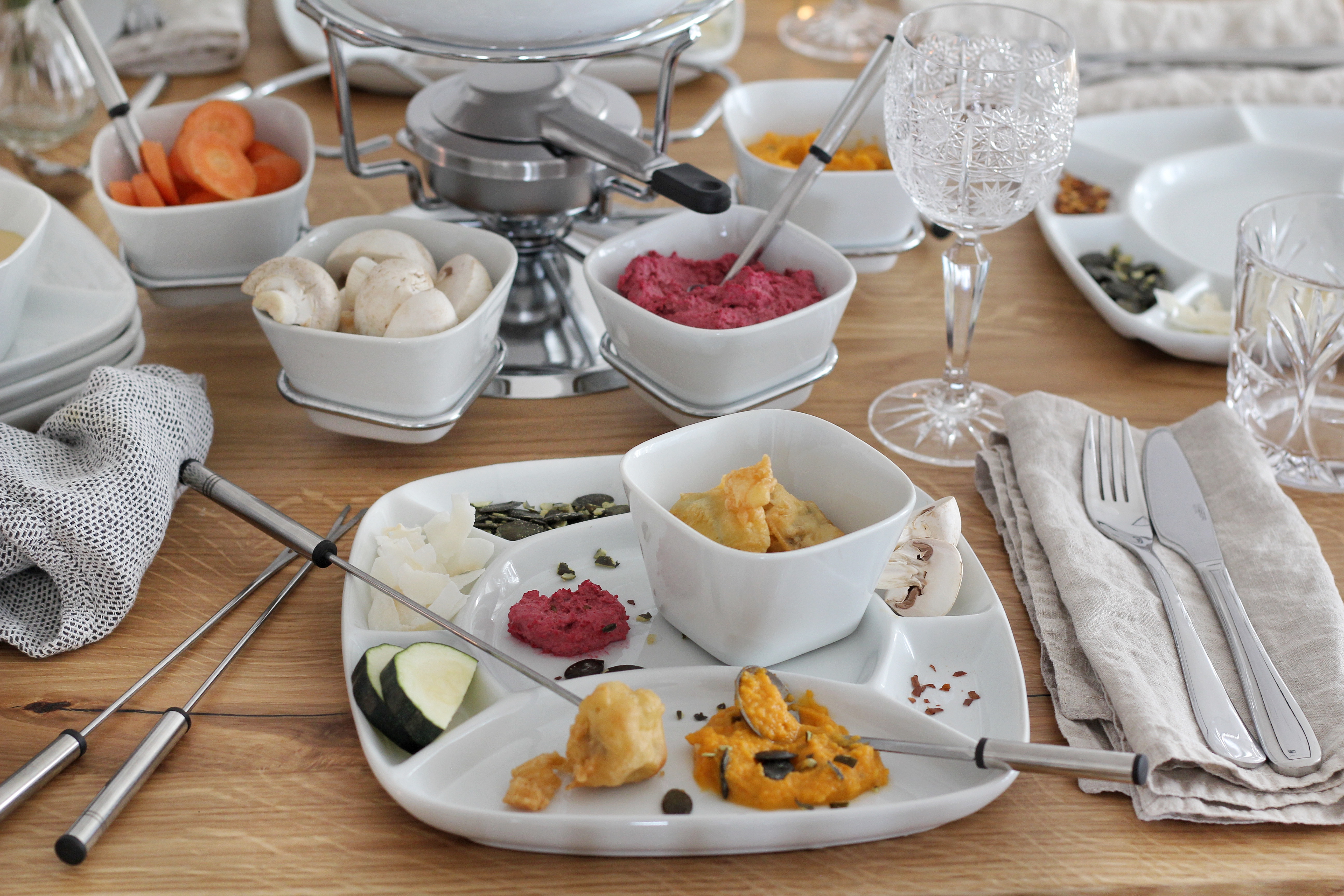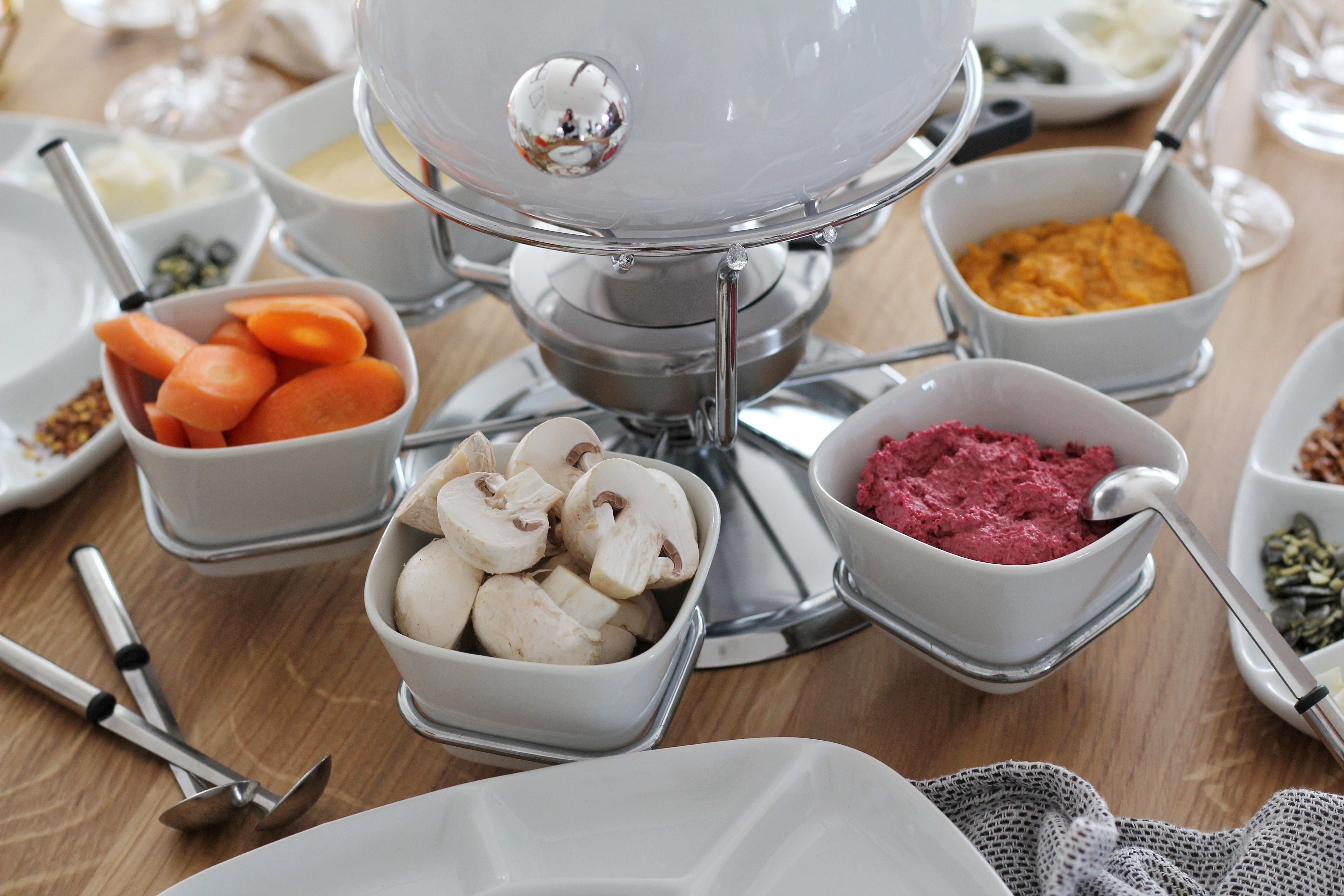 Da man von hübsch natürlich nicht satt wird verrate ich euch auch noch unsere Lieblingsrezepte für ein vegetarisches Fondue. Ihr könnt es natürlich aber auch klassisch mit Suppe und Fleisch oder Fisch probieren. Euer Fantasie sind beim Fondue essen keine Grenzen gesetzt.