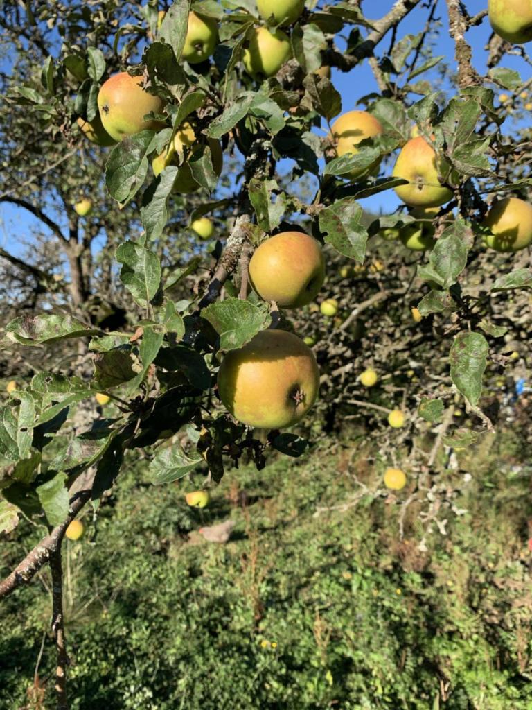 Auf dem Weg erzählt mir meine Oma, wie wichtig es ist, auch die Äpfel vom Boden aufzuheben und einzusammeln. Daraus backen wir später einen leckeren Kuchen, machen Apfelmus oder Birnenkompott und den Rest haben wir an die Tiere im Stall verfüttert.