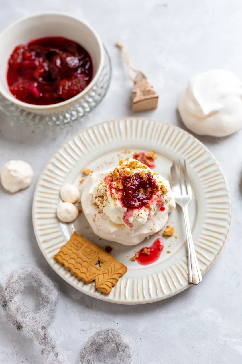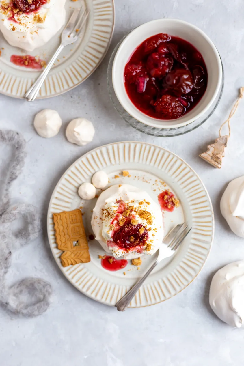 Knackige Schale – watteweicher Kern und fruchtige Note – entdeckt meine Mini Pavlova mit Zwetschkenröster