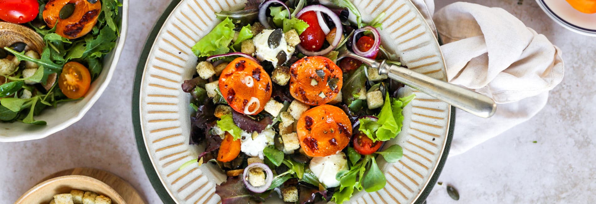 Salate im Sommer – das passt einfach! Und weil ich so ein Salat-Fan bin, hab ich mir diesen super fruchtigen Sommersalat mit gegrillten Marillen für euch überlegt.