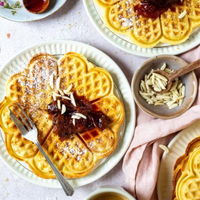 Das ist mein Stichwort. Ich hab‘ ja noch ein Rezept für belgische Waffeln für euch…