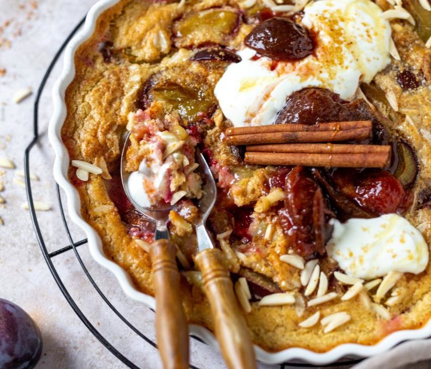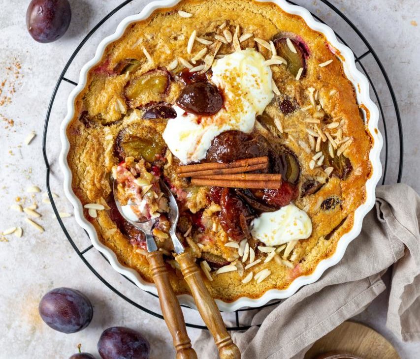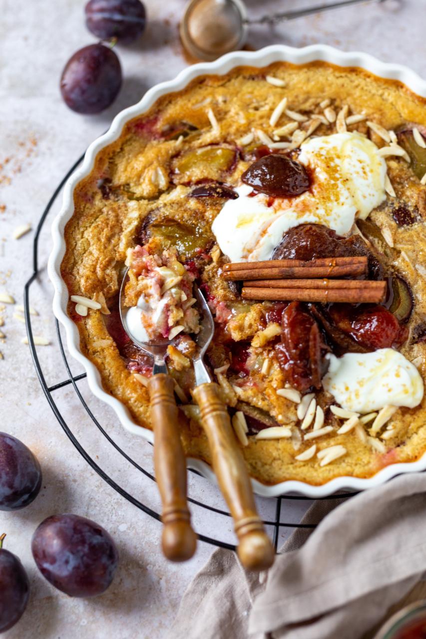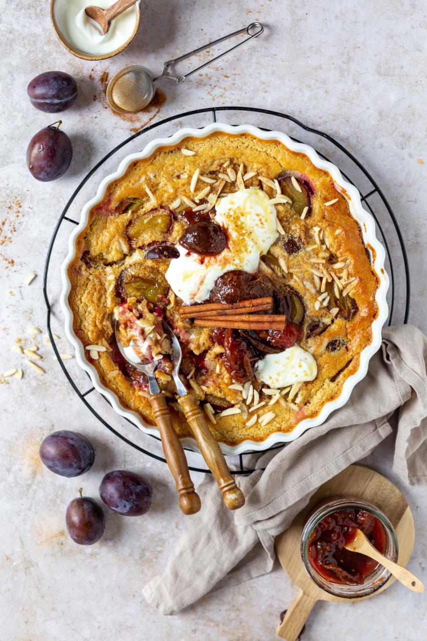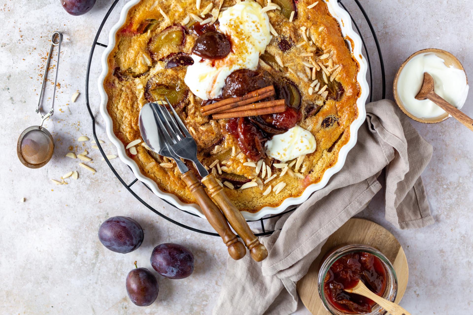 Als Dessert darf es dann gerne eine Zwetschken-Mandel-Clafoutis mit Zwetschkenröster und griechischem Joghurt sein :).