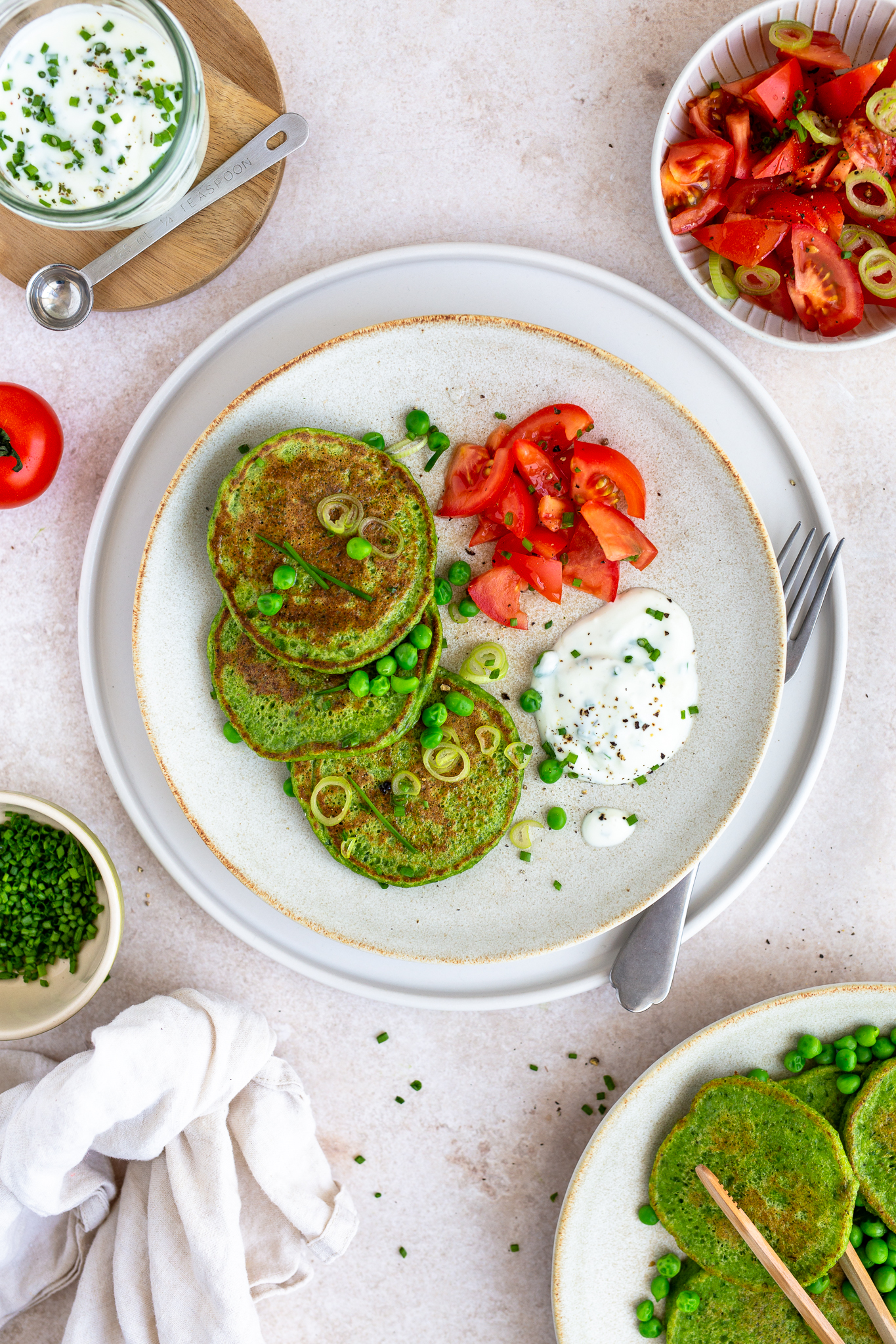 Erbsen-Pancakes mit Schnittlauch-Dip