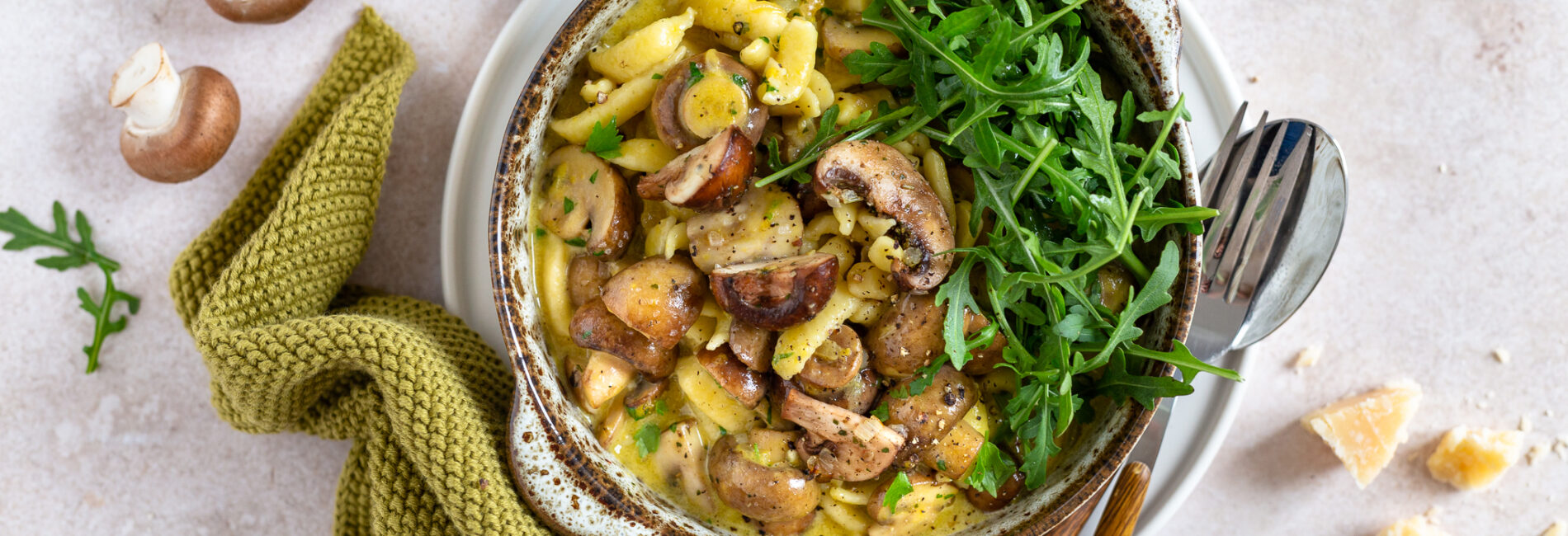 Hier kommt ein echten Soulfood-Gericht für die ganze Familie – meine Spätzle mit Champignon-Carbonara! Probiert sie gleich aus!