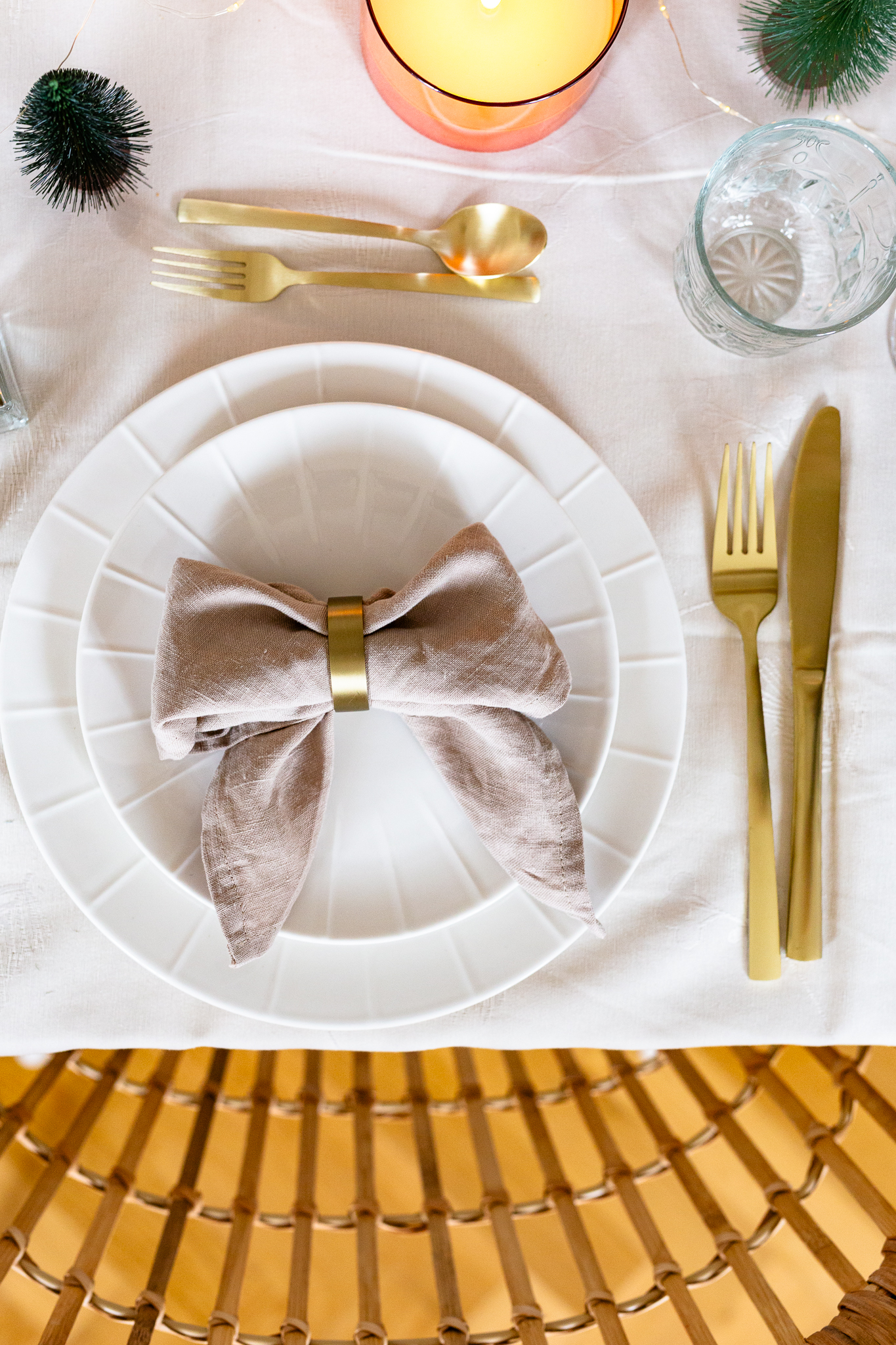 Schaffe eine festliche Atmosphäre mit einer schön gedeckten Tafel. Kerzen, Weihnachtsdekorationen und vielleicht sogar ein paar Tannenzweige können eine gemütliche Stimmung schaffen.