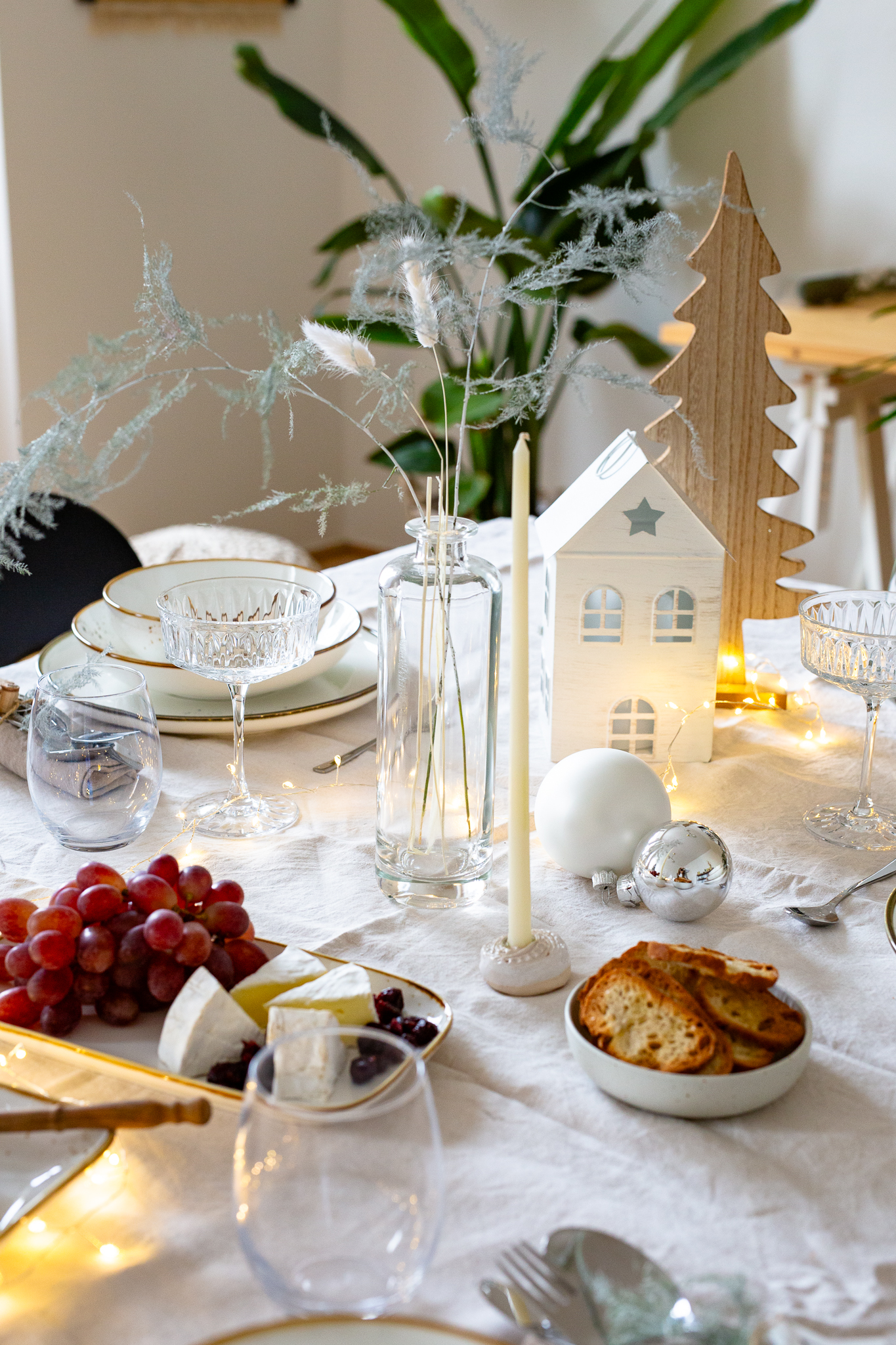 Wenn du einen modernen und schlichten Look bevorzugst, könnest du dich von skandinavischem Design inspirieren lassen. Weiße Tischdecken und Geschirr in Kombination mit klaren Linien schaffen eine zeitlose Eleganz. Füge ein paar dezente Weihnachtselemente wie silberne Kerzenhalter oder minimalistische Sterne hinzu, um die festliche Stimmung zu betonen.