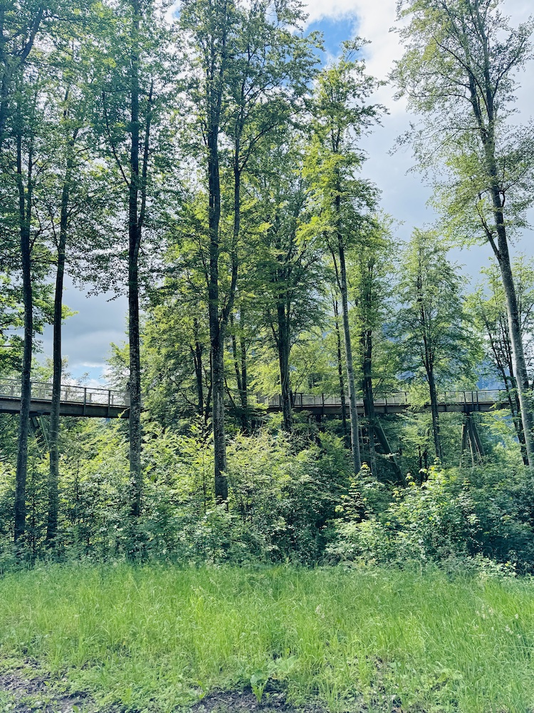 Am Laudachsee angekommen, kehrten wir im Gasthaus Ramsaualm ein, wo wir köstliche regionale Speisen genossen. Danach erkundeten wir den Baumwipfelpfad, der faszinierende Einblicke in die Natur bietet. Der Niederseilgarten und der Kinderspielplatz am Grünberg sorgten für jede Menge Spaß und Abenteuer für die Kleinen.