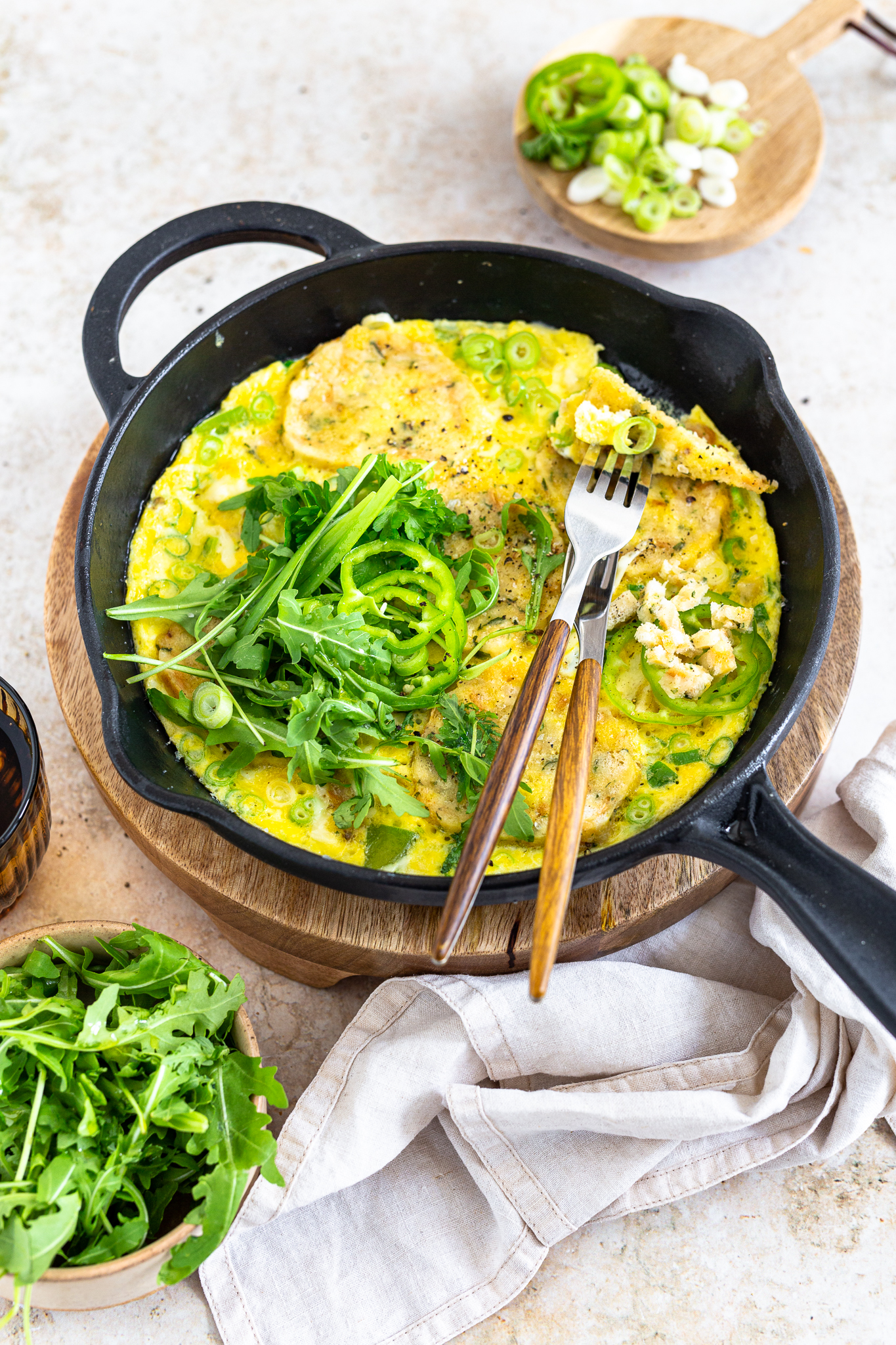 Dieses Rezept zeigt, wie aus simplen Zutaten eine köstliche Mahlzeit wird. Semmelknödel, Paprika und Jungzwiebeln sorgen für eine tolle Kombination aus weicher und knackiger Konsistenz. Der geschmolzene Käse verbindet alles zu einer harmonischen Einheit, während frische Petersilie eine feine, kräftige Note mitbringt. Eier und Milch machen das Omelette besonders fluffig und saftig.