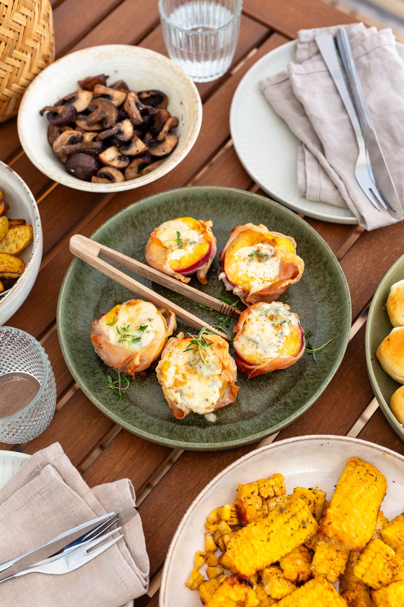 Etwas feiner, aber nicht weniger raffiniert sind meine gefüllten Nektarinen mit Gorgonzola – ein bisschen süß, ein bisschen herzhaft, und sowas von sommerlich. Ich serviere sie gerne als kleine Vorspeise oder zu gegrilltem Hähnchen – immer wieder ein Wow-Moment.