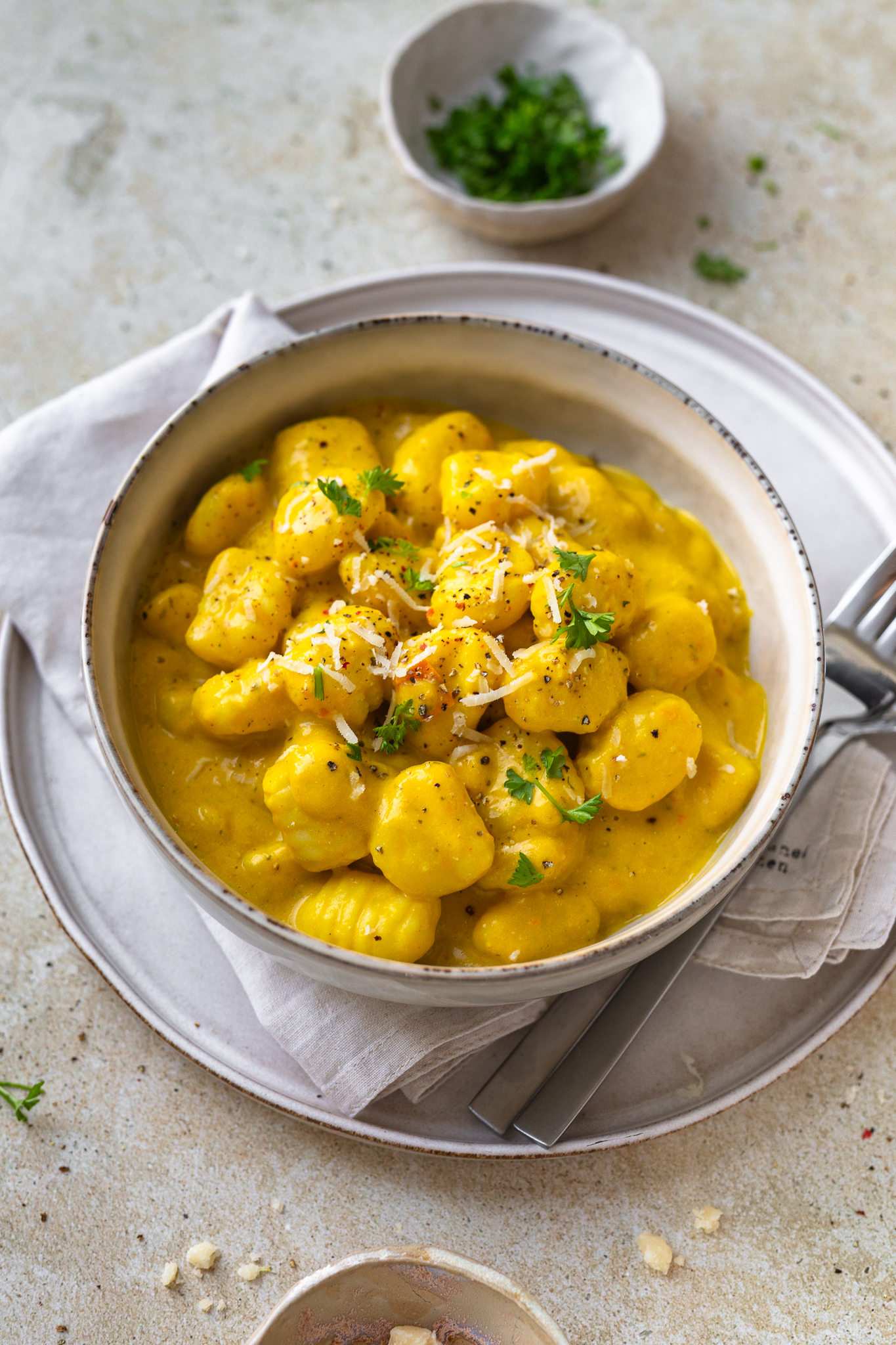 - Tipp: Ein Spritzer Zitronensaft oder eine Prise Muskatnuss harmoniert wunderbar mit der cremigen Kürbis-Parmesan-Sauce.