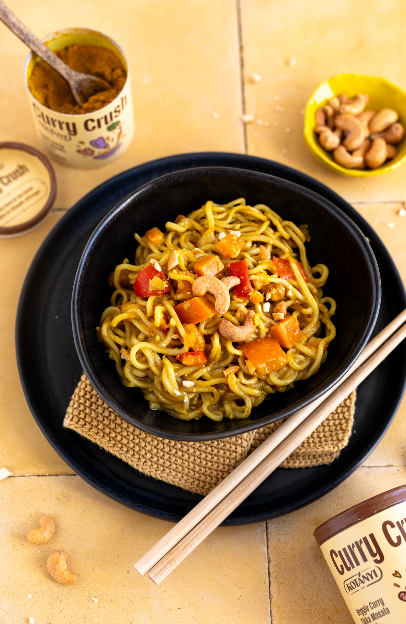 Wenn die Nudeln am Ende zu viel Flüssigkeit aufsaugen, einfach ein paar Esslöffel Brühe oder Wasser nachgießen. So bleibt das Curry schön cremig. Diese Curry-Nudeln sind die beste Idee für Tage, an denen ihr schnell etwas Warmes, Sättigendes und trotzdem Leichtes braucht. Ohne Aufwand, ohne komplizierte Schritte – aber mit ganz viel Geschmack und guter Laune.