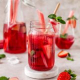 Rhabarber und Erdbeeren waschen und in Scheiben schneiden.Mit Wasser, Zucker, Vanillezucker und den Saft einer Zitrone zum Kochen bringen. 5 Minuten sprudelnd kochen lassen, durch ein Sieb abgießen und sofort in sterile Flaschen füllen.Wenn der Sirup kühl und dunkel gelagert wird ist er mindestens 6 Monate haltbar, wer eine Flasche öffnet sollte diese im Kühlschrank verwahren und innerhalb einiger Tage aufbrauchen. Keine Sorge er schmeckt so lecker, dass das bestimmt kein Problem ist.Voila!