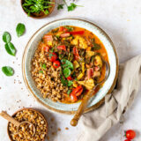 Einfaches Rezept für ein buntes Gartencurry mit regionalen und saisonalen Zutaten. Dazu schmeckt heimischer Dinkelreis!