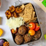 Karotten zerkleinern und mit Rinder-Faschiertem in eine Schüssel geben.Knoblauchzehe schälen fein hacken und mit den restlichen Zutaten und Gewürzen in die Schüssel geben.Backofen auf 200 Grad Heißluft vorheizen.Mit den Händen gut vermengen und kleine Bällchen daraus formen. Die Bällchen auf ein Backblech, mit Backpapier, legen und bei 200 Grad für ca. 12-15 Minuten goldbraun backen.Abkühlen lassen und in die Jausenboxen füllen.Was kommt noch in unsere Jausenbox:· Bio Dinkel Cracker Mediterran· Zwetschken, ggf. halbieren und entsteinen· Käse, mit Keksausstechern in lustige Formen bringen· Cocktail Tomaten