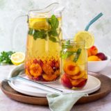 Den Tee zubereiten, Honig einrühren und für ca. 10 Minuten ziehen lassen.Marillen entsteinen und vierteln. Zitrone in Scheiben schneiden. Mit den Minze-Zweigen in eine große Karaffe/Teekanne geben.Sobald der Tee lauwarm ist, in die Karaffe füllen und für eine Stunde im Kühlschrank ziehen lassen.Ihr könnt den Eistee natürlich auch direkt genießen, dazu eine Hand voll Eiswürfel mit in die Karaffe geben. Der Geschmack von Marillen, Zitronen und Minze entfaltet sich allerdings erst nachdem der Eistee durchgezogen ist.Den Marillen Minze Eistee in großen Gläser servieren, mit einem Löffel unbedingt einige Marillenstücke mit in jedes Glas geben.Sollten einmal nicht alle Marillen aufgegessen werden, einfach fein pürieren, in eine Eiswürfelform geben, tiefkühlen und den nächsten Eistee damit verfeinern.