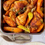 Dieses Ofenhuhn mit herbstlichem Schmorgemüse macht die kalten Herbsttage gleich viel erträglicher und schmeckt dazu noch herrlich. Lasst es euch schmecken!