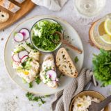 Ein würziger Frischkäse Aufstrich mit geräuchertem Forellenfilet, Zitrone und frischen Kräutern. Rillettes de Truit schmeckt besonders gut auf einem knusprigen Baguette.