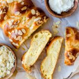 Herrlich fluffiger Germteig gefüllt mit cremigem Topfen, getoppt mit knusprigen Mandelblättchen.