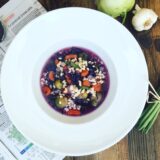 Gemüse putzen und in kleine Würfel schneiden. Gemüse, ausgenommen dem Blaukraut, in einem großen Topf mit der Gemüsebrühe 20 Minuten kochen lassen.In der Zwischenzeit Buchweizen und 4 Tassen Wasser sowie einer Prise Salz 10-15 Minuten kochen, abseihen und beiseite stellen.Nach 20 Minuten Blaukraut zugeben und weitere 10 Minuten auf kleiner Flamme köcheln lassen. 5 Minuten vor Ende der Kochzeit Buchweizen einrühren und mitkochen lassen. Dadurch wird die Suppe eingedickt - wer möchte kann natürlich etwas Käse einstreuen.