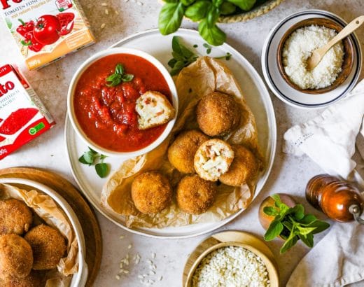 Knusprig gebackene Risottobällchen mit Prosciutto und einem weichen Mozzarella Kern. Dieses Gericht schmeckt der ganzen Familie und ist ein echter italienischer Leckerbissen. Reis oder Risotto-Reis, das ist hier die Frage!