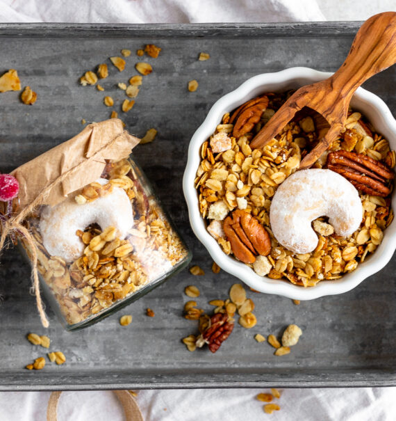 Sucht ihr auch noch nach DEM perfekten, weihnachtlichen & kulinarischen Mitbringsel? Dann seid ihr hier genau richtig, denn ich möchte euch heute mein Rezept für Vanillekipferl Granola im Glas verraten.