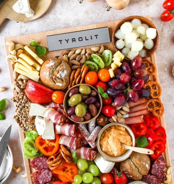 Die Rezeptidee für meine Jausenplatte mit knusprigen Bierbrötchen ist in Zusammenarbeit mit TYROLIT life entstanden und enthält Werbung. So schön kann „jausnen“ sein! Eine große Platte die in allen Farben