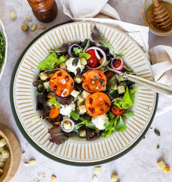 Salate im Sommer - das passt einfach! Und weil ich so ein Salat-Fan bin, hab ich mir diesen super fruchtigen Sommersalat mit gegrillten Marillen für euch überlegt.