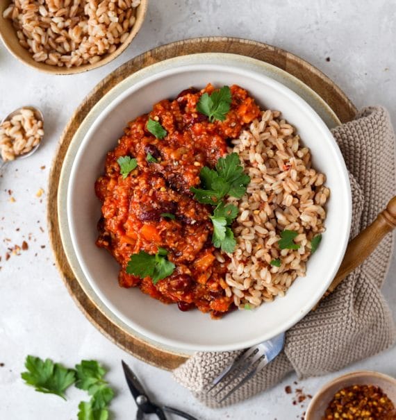 Heute gibts Grünkern-Chili mit Dinkelreis! Wo bleibt der Beifall? Schmeckts mir oder nicht? Das ist hier die Frage. Tja, als ich voller Freude angekündigt habe dass es Grünkern-Chili zum Mittagessen