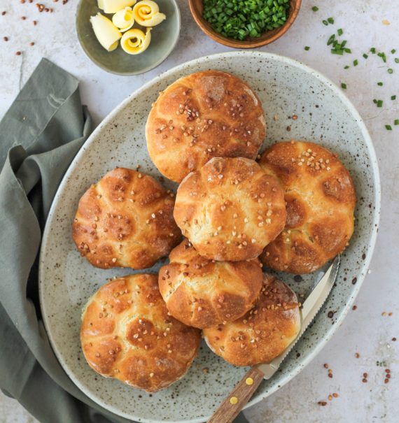 Da geht nicht nur die Sonne auf sondern auch mein Herz! 🙂 Knusprige selbst gebackene Dinkel Brötchen schmecken einfach noch besser als gekaufte. Zugegeben Brot und Brötchen backen ist nicht