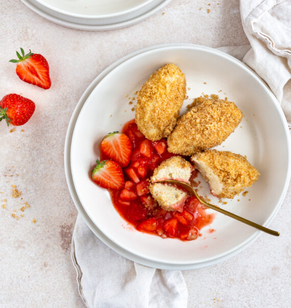 Topfennockerl mit Erdbeersauce