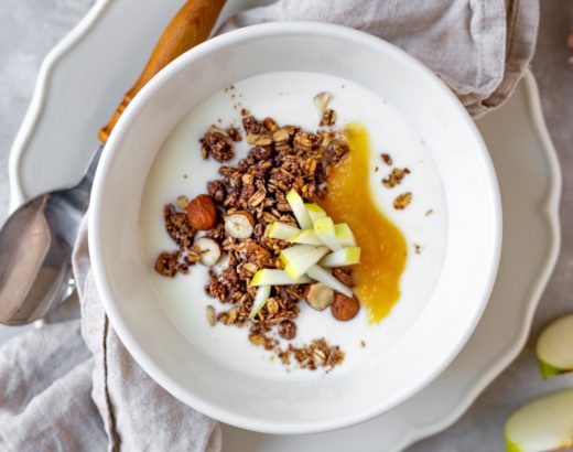 Unglaublich leckeres Apfelmus-Granola ganz einfach selbstgemacht. Wir lieben es, und ihr? Bei uns gibt es zu jeder (Jahres-)Zeit das richtige Granola! Im Frühling gerne ein Basis Granola verfeinert mit ersten
