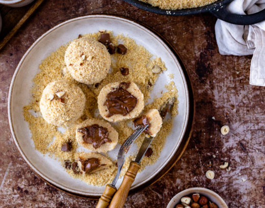 Mhmmm…. Mhmmm… genau so klingt es wenn wir Nougatknödel mit Haselnussbrösel essen! Kann denn Knödel Sünde sein? Zugegeben Figurschmeichler sind diese Knödel keine. Müssen sie aber auch nicht! Viel mehr