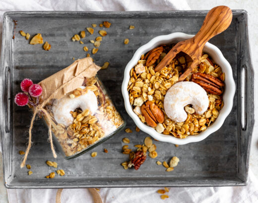 Sucht ihr auch noch nach DEM perfekten, weihnachtlichen & kulinarischen Mitbringsel? Dann seid ihr hier genau richtig, denn ich möchte euch heute mein Rezept für Vanillekipferl Granola im Glas verraten.