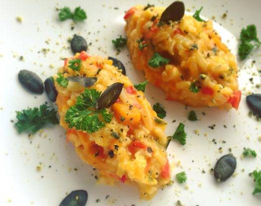 Falls ihr euch fragt ob wir drei schon Kürbisähnliche Züge annehmen – noch haben wir keine Orangen Nasen 🙂 Wir verputzen nur liebend gern saisonales Gemüse! Und da so ein