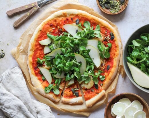 Meine neue Pizza-Kreation: Pizza mit Birnen und Vogelsalat - ein neues Geschmackserlebnis! Einfach himmlisch!