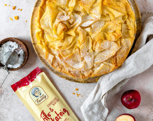 Aus ALT mach NEU! Inspiriert von Oma´s köstlichem Apfelstrudel entstand diese herrliche Apfelstrudel-Filo-Tarte mit knusprigen Filo-Teigblättern von Tante Fanny und einer feinen Apfel-Füllung. Soulfood wie aus dem Bilderbuch „Apfelstrudel, Apfelstrudel